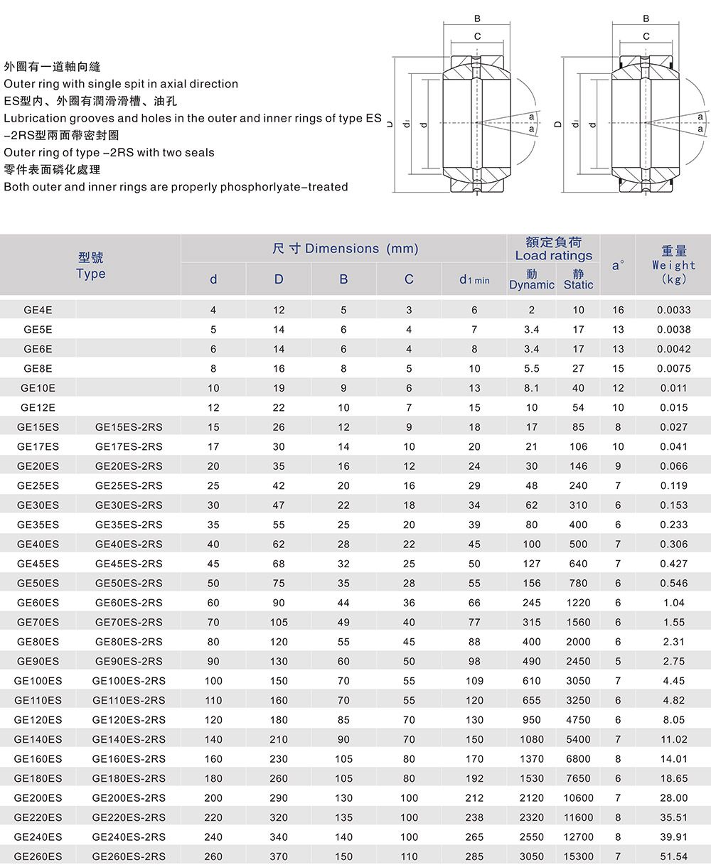 產品名稱:GE-E/GE-ES單開縫向心關節軸承